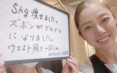 昔からむくみがひどく、夕方になると靴がきつくなるのが悩みでした。ロイヤルQTに通い始めてから、むくみにくくなっただけでなく、全身がスッキリして軽くなりました。