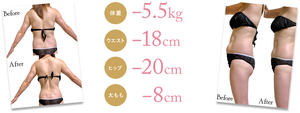 以前はどんなに頑張っても細くならなかったのに、本当に驚きました。施術中も全然痛くなくて、気持ちよくて寝てしまいそうでした。この調子で通い続けて、理想の体型を目指します!